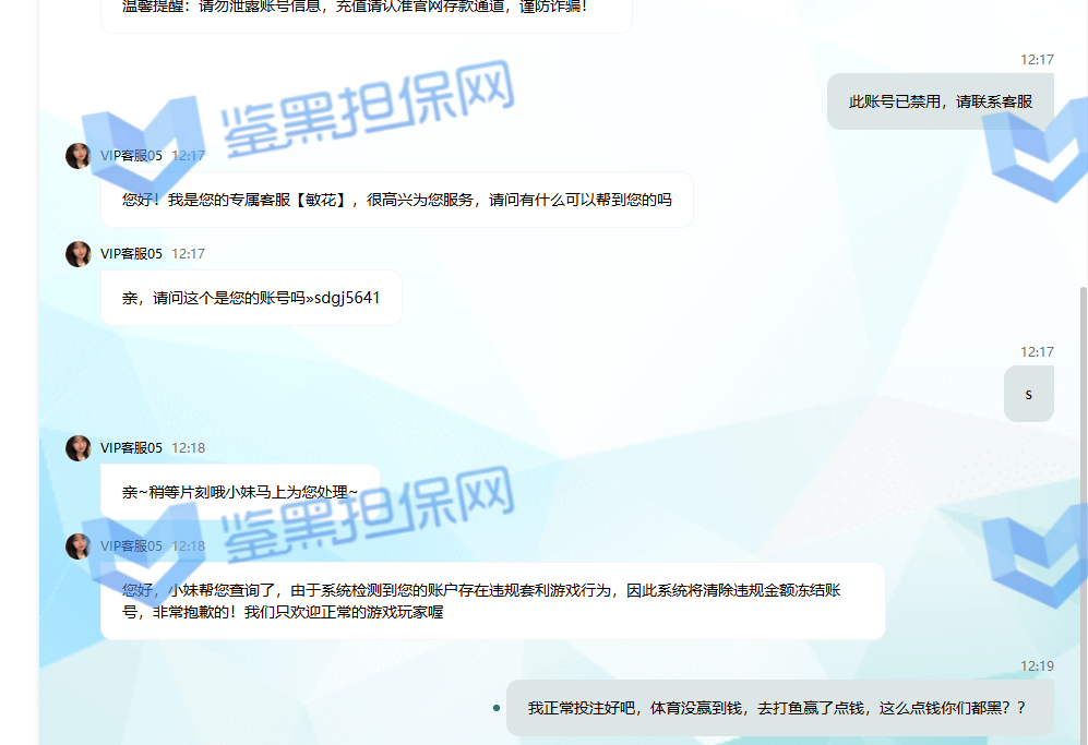 账号:sdgj5641 充值900玩体育没赢钱,就去玩打鱼赢了600,提款1500,就冻结我账号 叫他们退本金都不肯